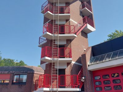 Het gebouwcomplex met politiebureau en brandweerkazerne aan de Burgemeester Wegstapelplein 1 in Zoetermeer werd in 1978-80 gebouwd naar ontwerp van architect Frans de Man, hoofd van de afdeling Architectuur en Bouwkunde van de gemeente. Het betreft een beeldbepalend ensemble dat als eerste bouwwerk van het in 1975 ontworpen nieuwe stadshart van Zoetermeer werd gebouwd. Conform de Forum gedachte koos de architect voor een opzet met relatief kleinschalige bouwdelen die in verschillende hoeken aan elkaar geschakeld zijn rondom twee binnenplaatsen. Het geheel is in een plastische architectuur opgetrokken met speelse afschuiningen, hoekvertandingen, en verglaasde bouwdelen met schuine dakdelen die bekleed zijn grijsroze leien.